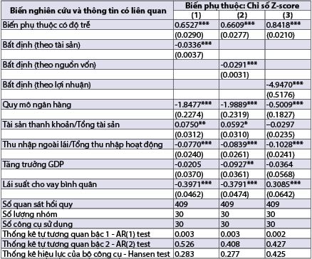 Bảng 2: Bất định ngân hàng và rủi ro vỡ nợ thông qua chỉ số Z-score