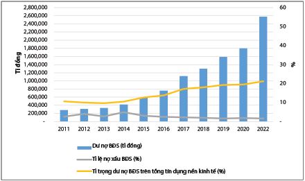 Hình 2: Tín dụng BĐS từ hệ thống ngân hàng giai đoạn 2011 - 2022
