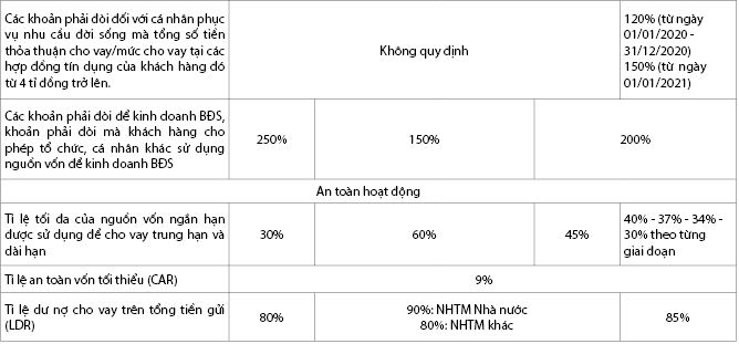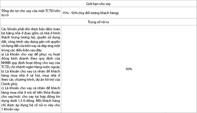 Tuy nhiên, sự thay đổi này không ảnh hưởng đến nhu cầu vay vốn để mua nhà ở xã hội, mua nhà theo các chương trình, dự án hỗ trợ của Chính phủ, nhà ở có tổng giá trị gốc ban đầu dưới 1,5 tỉ đồng, cũng như nhu cầu vay vốn để phục vụ sinh hoạt thiết yếu hằng ngày của khách hàng do hệ số rủi ro không thay đổi.
