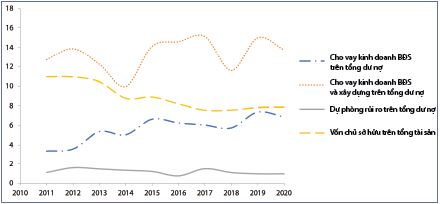 Hình 3: Tín dụng BĐS của các ngân hàng, giai đoạn 2011 - 2020