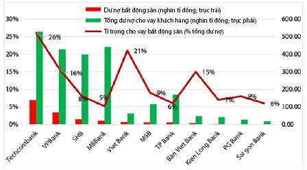 Đồ thị 2: Dư nợ cho vay bất động sản của một số ngân hàng ở Việt Nam