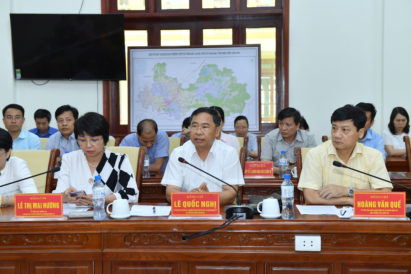 Đoàn công tác do đồng chí Lê Quốc Nghị - Ủy viên Ban Thường vụ (UVBTV), Trưởng Ban Dân vận Đảng ủy Cơ quan NHTW, Vụ trưởng vụ Kiểm toán nội bộ làm trưởng đoàn, tham dự có các đồng chí: Lê Thị Mai Hương - UVBTV, Chánh văn phòng Đảng ủy Cơ quan NHTW; Hoàng Văn Quế - UVBCH Đảng bộ Cơ quan NHTW, Cục trưởng Cục Quản trị; Cao Văn Bình - UVBCH Đảng bộ Cơ quan NHTW, Tổng Giám đốc Trung tâm Thông tin tín dụng Quốc gia Việt Nam; Nguyễn Hồng Vân - Vụ trưởng Vụ Tài chính - Kế toán; Nguyễn Văn Oánh - Giám đốc NHNN Chi nhánh tỉnh Bắc Giang…