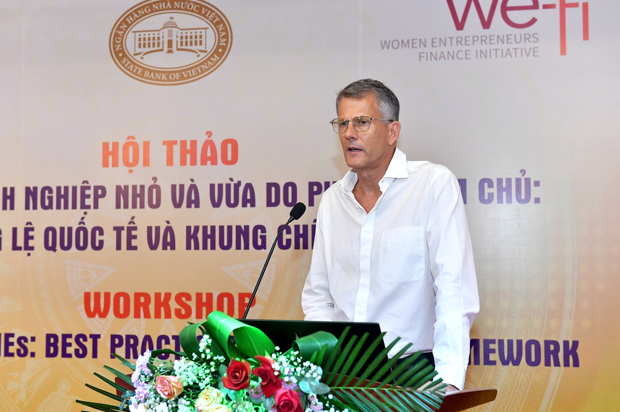 Trao đổi về thông lệ và thực tiễn thúc đẩy cho vay DNNVV do nữ làm chủ trong phiên I của Hội thảo, ông Reuben Jessop – Chuyên gia tư vấn tài chính quốc tế đã có phần trình bày về thi hành chính sách và triển khai cho vay dành cho nhóm DNNVV do nữ làm chủ. Trong đó, ông nêu lên một số ví dụ về các chương trình cho vay được thiết kế riêng cho doanh nhân nữ của Ngân hàng Franco-Lao (BFL) và IFC, “Chương trình Vốn” của Bank of America và Quỹ Tony Burch… Chuyên gia Reuben Jessop cũng đưa ra các khuyến nghị đối với NHNN và các nhà hoạch định chính sách như thúc đẩy hoạt động cho vay đối với các DN do phụ nữ làm chủ như một biện pháp phòng ngừa tích cực nhằm bảo vệ các ngân hàng trước tình trạng suy giảm danh mục cho vay; cải thiện các cơ chế bảo lãnh tín dụng và dịch vụ tư vấn để hoạt động hiệu quả hơn cho các DNNVV; xây dựng kiến thức và chuyên môn cho các tổ chức tài chính tập trung vào các doanh nghiệp do phụ nữ làm chủ. Bên cạnh đó, các tổ chức tài chính cần theo dõi dữ liệu phân tách theo giới tính; xây dựng chiến lược dành riêng cho DN do phụ nữ làm chủ; phát triển các sản phẩm và dịch vụ phù hợp cho các DN này.