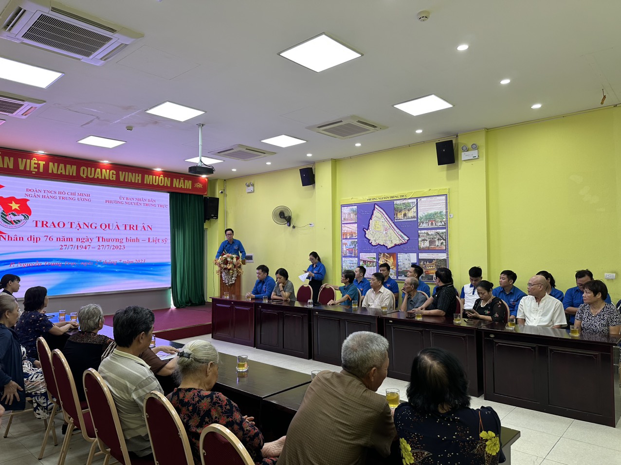 Tại buổi gặp mặt, đại diện Đoàn Thanh niên NHTW cùng cán bộ, đoàn viên, thanh niên đã thăm hỏi ân cần, bày tỏ lòng biết ơn sâu sắc và tặng quà cho các gia đình liệt sĩ và thương binh. 15 suất quà trị giá 15 triệu đồng đã được các đoàn viên trao tận tay từng gia đình liệt sỹ và thương binh, đây là tấm lòng nhỏ bé của tuổi trẻ Ngân hàng Trung ương tri ân những thương binh, liệt sỹ đã cống hiến cho sự nghiệp bảo vệ tổ quốc.
