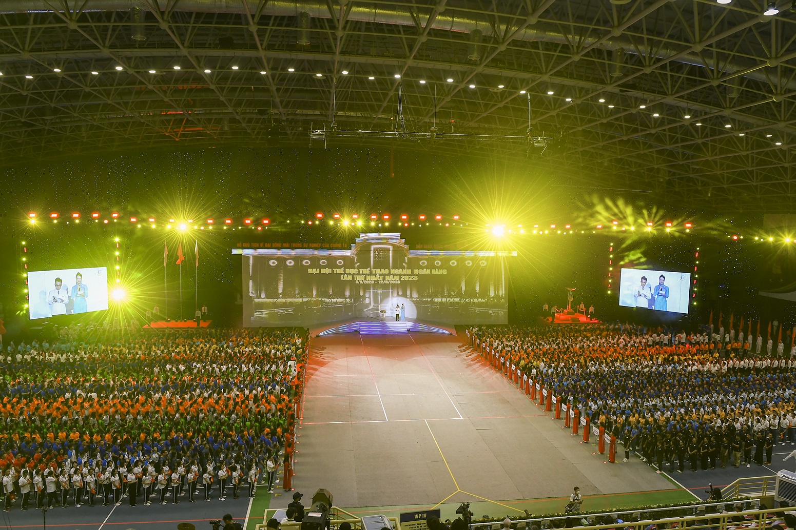 Với chủ đề "Vì sự phát triển của ngành Ngân hàng và sự phồn vinh của đất nước", đúng 19h30 ngày 8/8/2023 tại Cung Điền kinh Hà Nội, đường Trần Hữu Dực, phường Cầu Diễn, quận Nam Từ Liêm, TP Hà Nội Đại hội Thể dục thể thao (TDTT) ngành Ngân hàng lần thứ Nhất đã chính thức khai mạc.
