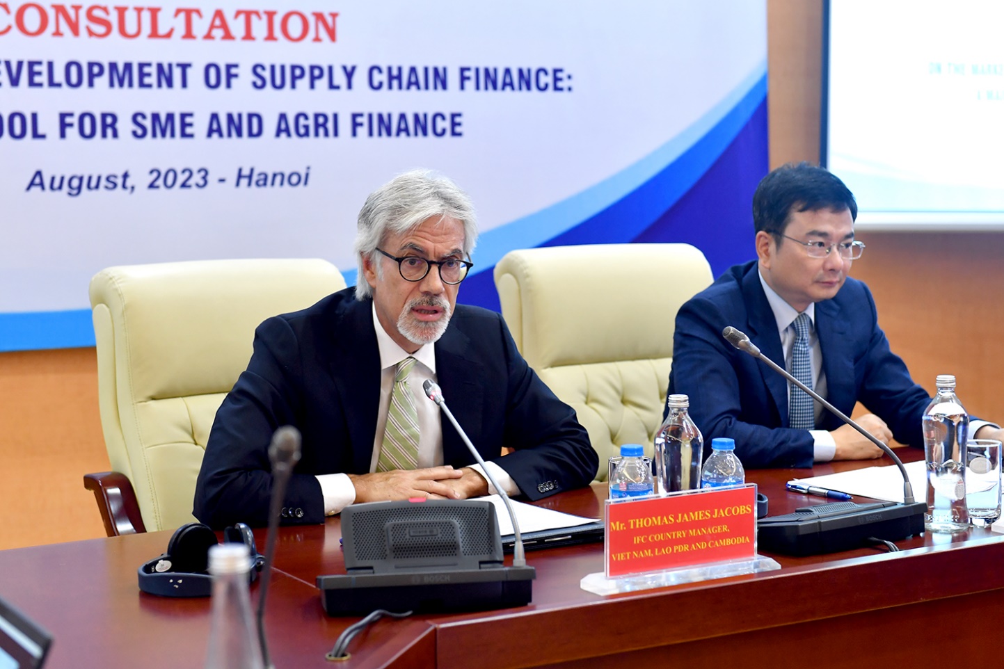 Tại Tọa đàm, Ông Thomas Jame Jacobs, Giám đốc Quốc gia, Việt Nam, Lào và Campuchia tại IFC cũng đã phát biểu khai mạc. Theo quan điểm của IFC, ngoài nỗ lực hạ lãi suất của NHNN, nguồn vốn lưu động và dịch vụ ngân hàng giao dịch tốt hơn sẽ giúp giảm bớt gánh nặng tín dụng mà các doanh nghiệp phải đối mặt. Trong bối cảnh này, việc phát triển tài trợ chuỗi cung ứng cũng là một trong những công cụ hỗ trợ cho các nhà sản xuất và nhà cung cấp địa phương để tối ưu hóa việc quản lý vốn lưu động thông qua chuyển giao các khoản phải thu bán hàng và hàng tồn kho thành tiền mặt và có được nguồn tài trợ với chi phí thấp hơn. Các sản phẩm tài trợ chuỗi cung ứng cũng là một trong những hình thức hỗ trợ cho các nhà sản xuất và xuất khẩu địa phương tăng cường liên kết với chuỗi cung ứng toàn cầu, nâng cao khả năng cạnh tranh, chấp thuận các đơn đặt hàng lớn và thực hiện nhiều giao dịch mở tài khoản hấp dẫn hơn đối với người mua toàn cầu.