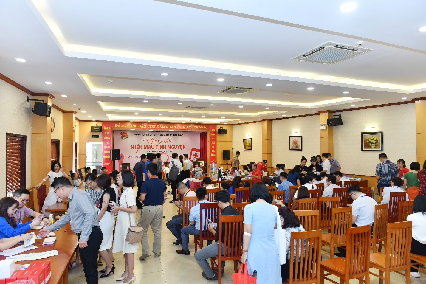 Sáng 18/8/2023, tại Trụ sở Ngân hàng Nhà nước Việt Nam (NHNN), chương trình Hiến máu tình nguyện đợt 2 năm 2023 do Đoàn Thanh niên Ngân hàng Trung ương (NHTW) tổ chức đã thu hút sự tham gia của gần 200 cán bộ, đoàn viên thanh niên đang sinh hoạt tại các cơ sở Đoàn trực thuộc Đoàn Thanh niên NHTW và công chức, viên chức, người lao động đang làm việc tại các đơn vị, Vụ, Cục thuộc NHNN.