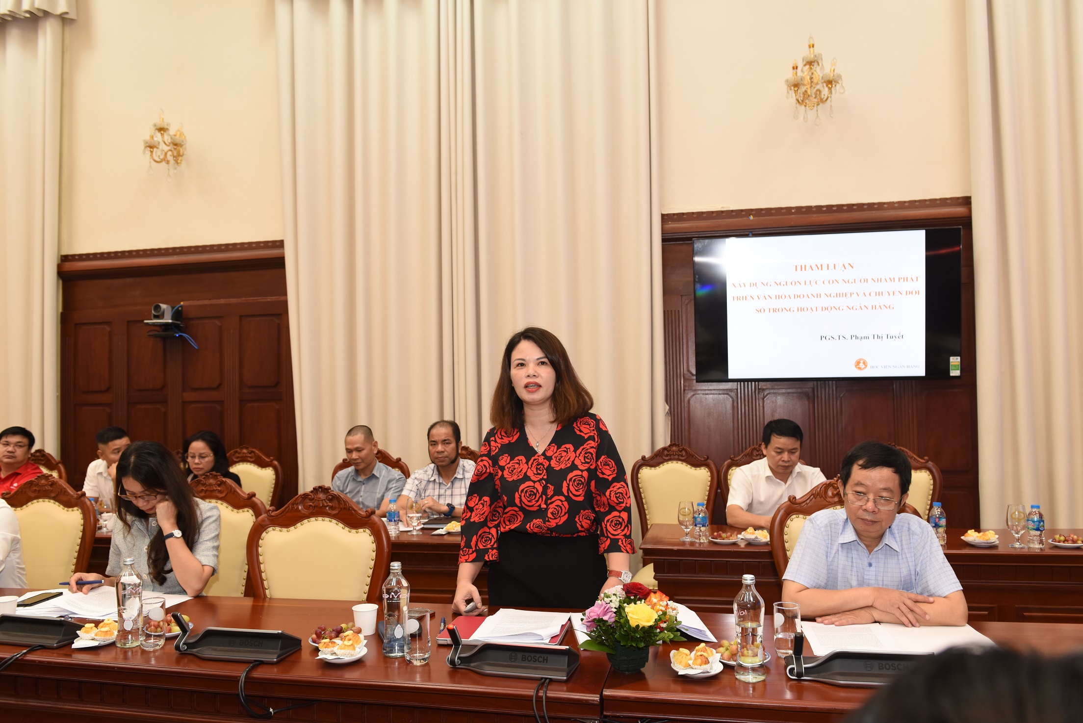 Các ý kiến trao đổi, thảo luận của các chuyên gia, khách mời đều khẳng định vai trò quan trọng của tổ chức công đoàn đối với xây dựng văn hóa doanh nghiệp trong bối cảnh chuyển đổi số. Đặc biệt, đại diện Công đoàn Cơ quan NHNN TW đã chia sẻ 4 nhiệm vụ đột phá của tổ chức công đoàn được đề ra tại Đại hội II Công đoàn cơ quan NHNN TW, nhiệm kì 2023 - 2028; Đại diện Công đoàn Ngân hàng Chính sách xã hội (NHCSXH) chia sẻ những hoạt động Công đoàn NHCSXH đã triển khai để đảm bảo và nâng cao đời sống vật chất, tinh thần của đoàn viên công đoàn, người lao động giúp đoàn viên công đoàn, người lao động phát huy cao độ tinh thần trách nhiệm, vượt qua khó khăn, tận lực cống hiến, góp phần hoàn thành xuất sắc mọi nhiệm vụ chính trị của NHCSXH; Đại diện Công đoàn Ngân hàng TMCP Tiên Phong (TPBank) nêu rõ về tác động của công nghệ đến văn hóa doanh nghiệp và giải pháp phát huy vai trò của Công đoàn TPBank trong bối cảnh chuyển đổi số; Đại diện Công đoàn Nông nghiệp và Phát triển nông thôn Việt Nam (Agribank) đưa ra các phân tích và nêu thực trạng về vai trò của tổ chức Công đoàn trong việc xây dựng và phát triển văn hóa Agribank, từ đó đưa ra một số kiến nghị với Công đoàn NHVN; đại diện Công đoàn Ngân hàng TMCP Việt Nam Thịnh Vượng (VPBank) khẳng định, xây dựng văn hóa doanh nghiệp được coi là một trong những cách thức định vị thương hiệu của VPBank. VPBank cũng đã đưa ra 5 giá trị cốt lõi để làm sâu sắc thêm và định vị thương hiệu VPBank một cách mạnh mẽ, toàn diện gồm: Khát vọng; Chính trực, Hiệu quả; Kỷ cương và Sáng tạo.