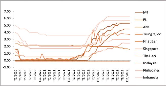 Hình 6: Diễn biến lãi suất tại các quốc gia