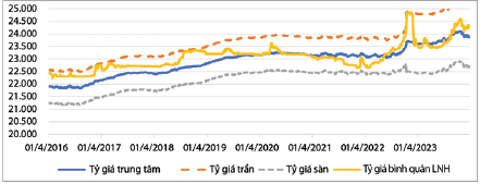 Hình 2: Diễn biến tỷ giá USD/VND giai đoạn 2016 - 2023