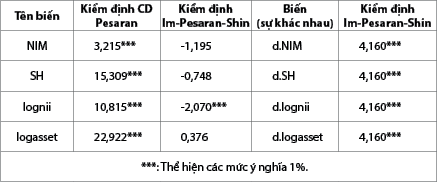 Bảng 2: Kiểm định phụ thuộc chéo và kiểm định tính dừng