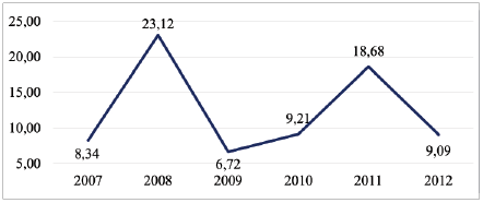 Hình 2: Lạm phát trong giai đoạn 2007 - 2012