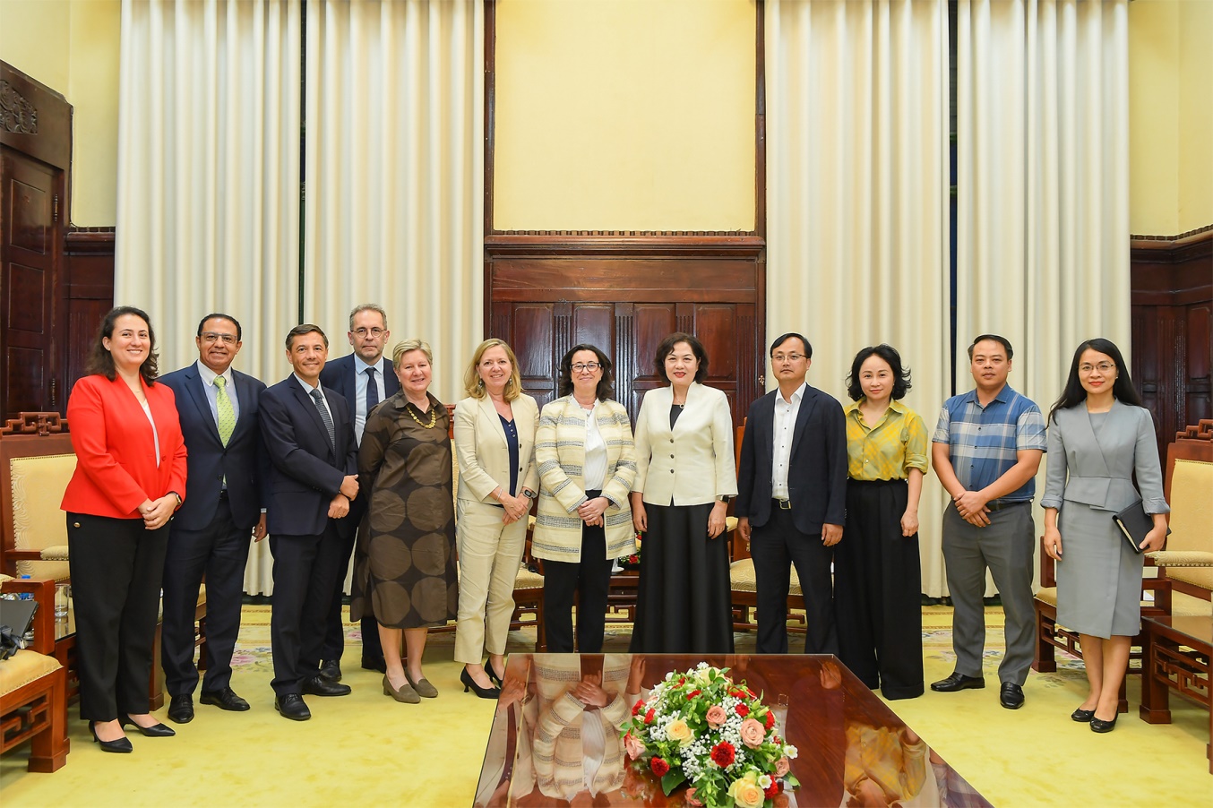 Trong bối cảnh kinh tế thế giới phải đối mặt với nhiều thách thức lớn chưa từng có tiền lệ, như xung đột địa chính trị kéo dài, lạm phát cao, lãi suất tăng mạnh; cơ hội thuận lợi và khó khăn, thách thức đan xen nhưng khó khăn, thách thức nhiều hơn, Thống đốc mong muốn WB sẽ tiếp tục đồng hành cùng Việt Nam, chia sẻ kinh nghiệm quý báu và hỗ trợ Việt Nam vượt qua khó khăn, thách thức. Với tư cách là một đối tác phát triển hàng đầu, WB có những nguồn lực và năng lực đặc biệt để hỗ trợ Việt Nam trong việc triển khai các chương trình, chính sách nhằm thúc đẩy tăng trưởng bền vững, thúc đẩy phát triển kinh tế xanh, kinh tế số, kinh tế tuần hoàn, nâng cao sức cạnh tranh của nền kinh tế đủ khả năng để chống chịu với các cú sốc bên ngoài. Bà Phó Chủ tịch ghi nhận nỗ lực của Chính phủ và các bộ ngành cũng như NHNN trong thời gian qua đã luôn có sự phối hợp chặt chẽ với Văn phòng WB nhằm tìm ra giải pháp xử lý những khó khăn/vướng mắc về pháp lý trong quy định của hai bên.