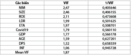 Kết quả tại Bảng 3 cho thấy chỉ số VIF nhỏ hơn 5 nên không có hiện tượng đa cộng tuyến giữa các biến độc lập trong mô hình.