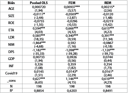 FGAPit = β0 + β1*AGEit + β2*SIZEit + β3*ROEit + β4*ETAit + β5*LDRit β6*NIMit + β7*DPSit + β8*GDPit + β9*INFit + β10*Covid19it