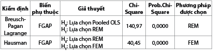 Bảng 5: Các kiểm định lựa chọn mô hình