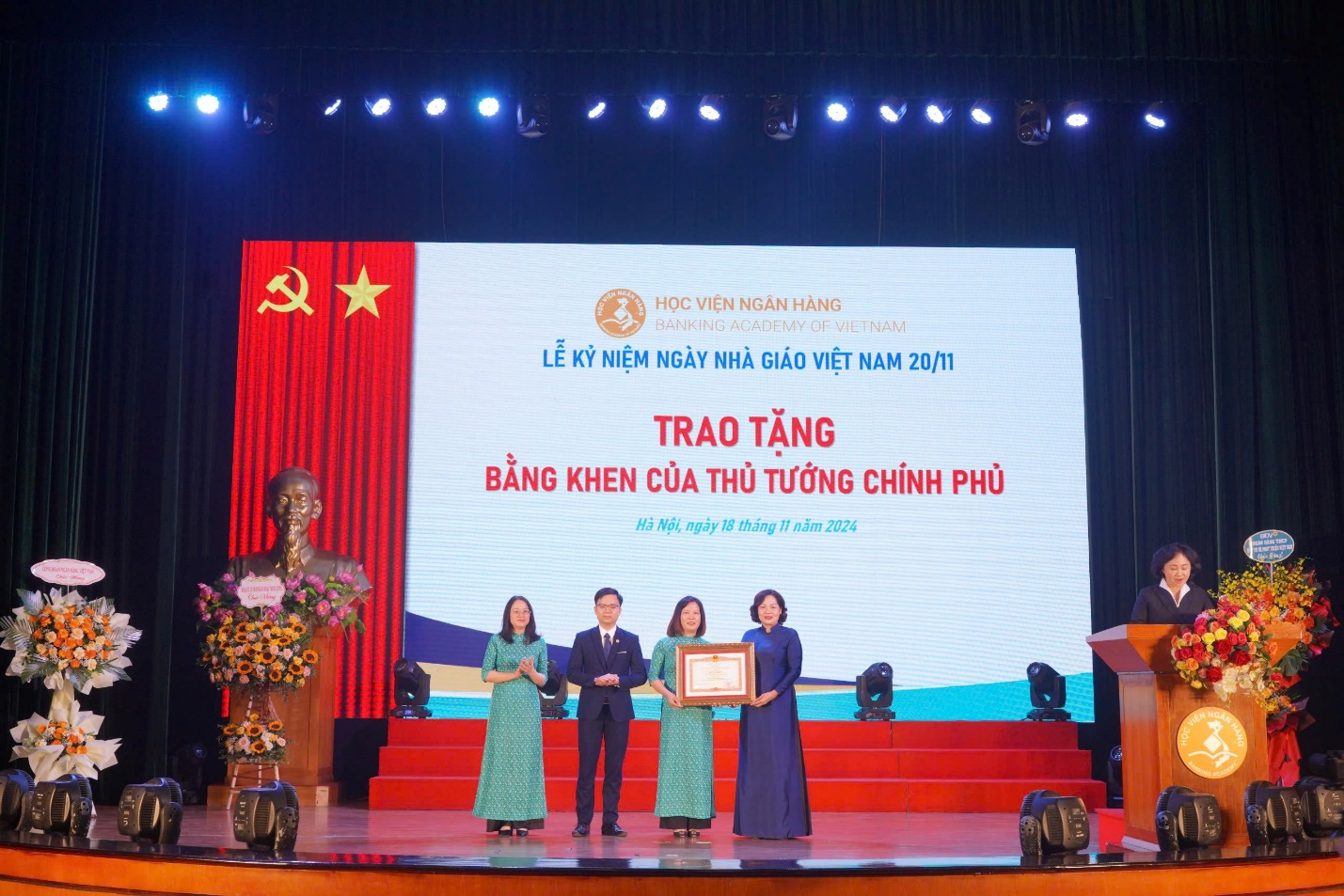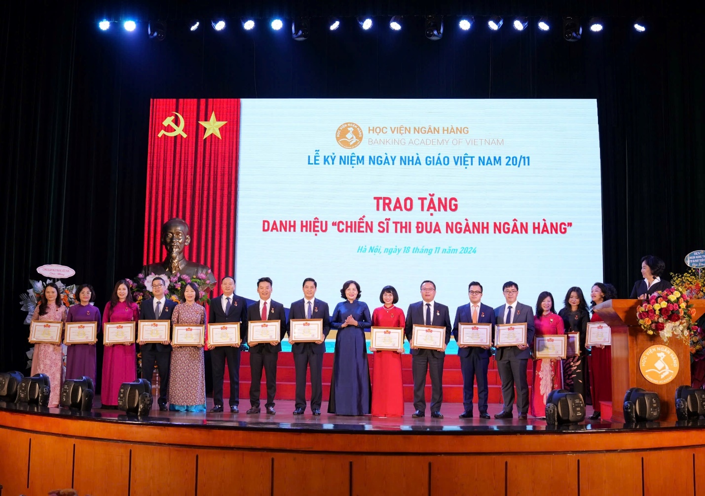 Nhân dịp này, cùng với việc tôn vinh và tri ân những đóng góp to lớn của các thế hệ giảng viên, cán bộ giảng dạy của HVNH cũng như toàn ngành Giáo dục trong sự nghiệp "trồng người", các cá nhân và tập thể HVNH đã vinh dự được trao tặng Bằng khen của Thủ tướng Chính phủ; Bằng khen của Thống đốc NHNN.