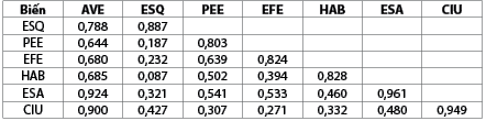 Bảng 3: Giá trị AVE và bình phương hệ số tương quan