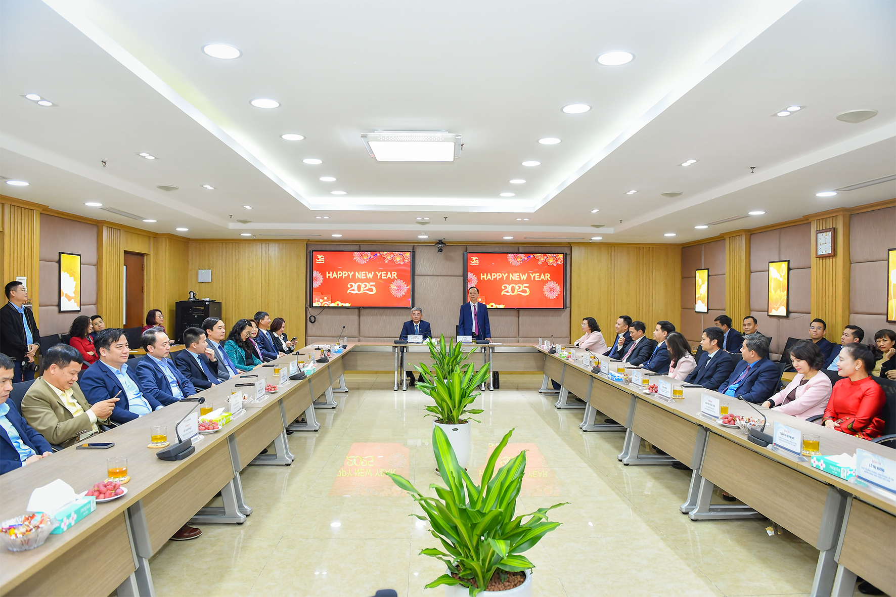 Thay mặt Ban cán sự, Ban Lãnh đạo NHNN, Phó Thống đốc Thường trực Đào Minh Tú đã gửi lời chúc mừng tốt đẹp nhất tới toàn thể lãnh đạo, cán bộ và người lao động Co-opBank nhân dịp Xuân Ất Tỵ 2025.